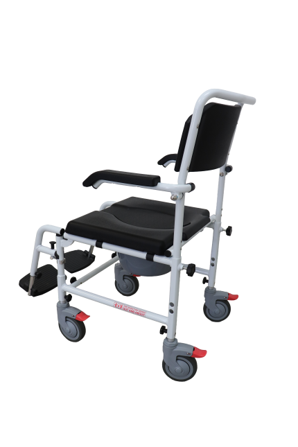 The Out and About Commode is a versatile and reliable solution designed for safe use in wet environments. With its lightweight yet durable aluminum frame and powder coating, it provides dependable support for daily use. The reversible armrests and swing-away footrests allow for smooth transfers and flexible positioning, making it practical for both users and caregivers. Its compact design and smooth maneuverability make it effective in bathroom spaces.