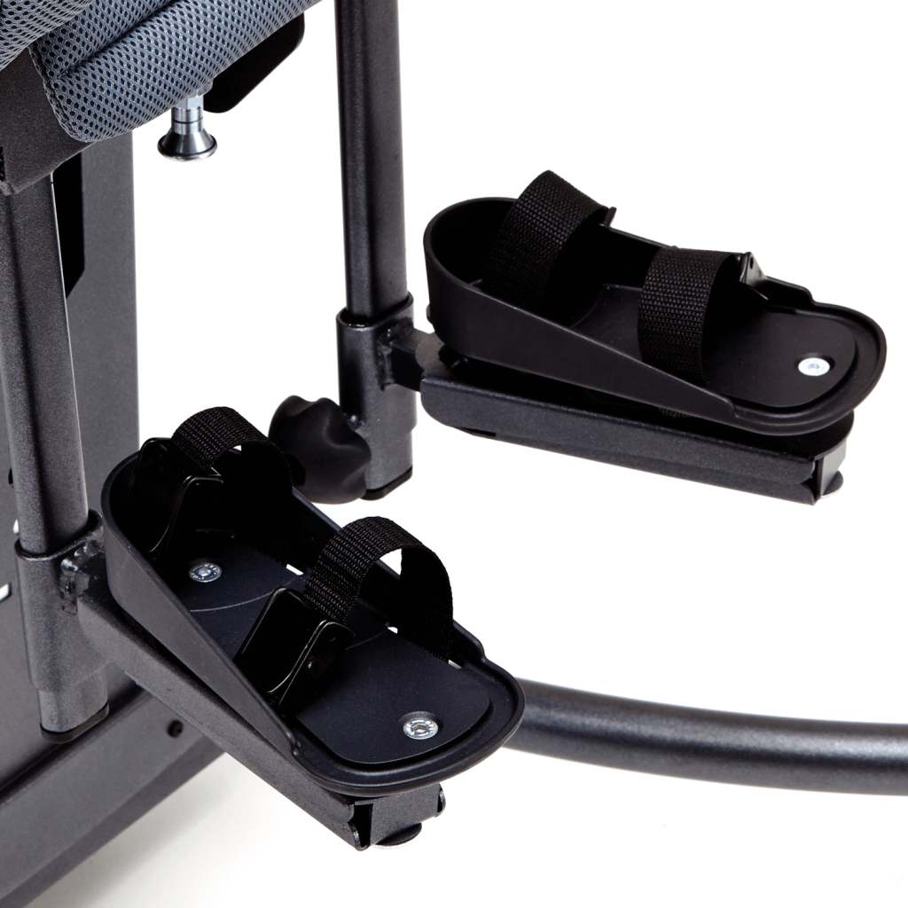 The innovative patented “Second Spine” technology provides opportunity to customize anatomical support to accommodate or control asymmetries through the trunk and spine. Adjustable pads allow for optimal pelvic positioning. Unique thigh straps provide full support for hips and lower extremities.