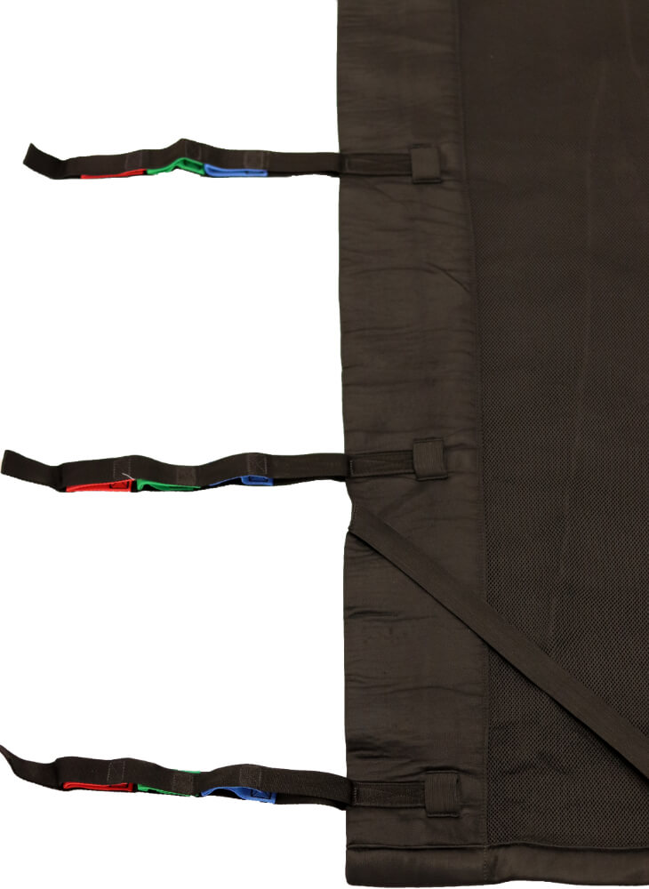 Designed for supine transfers, as well as repositioning a client in bed, it can also be used to turn someone onto their side. A positioning sling is available with or without elastics and handles and can be used with any compatible ceiling lift that accepts loop-style slings.
